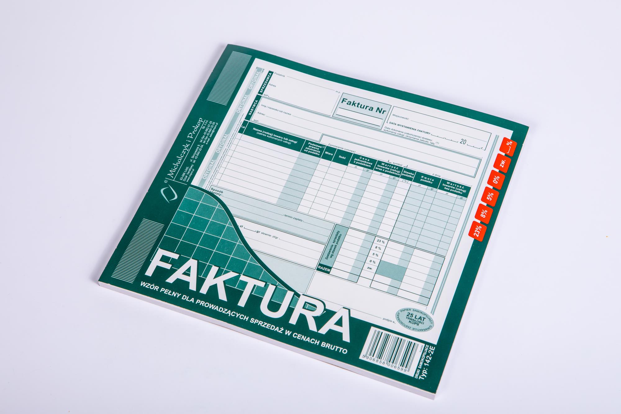 142-2E Faktura wzór pełny dla prowadzących sprzedaż w cenach brutto