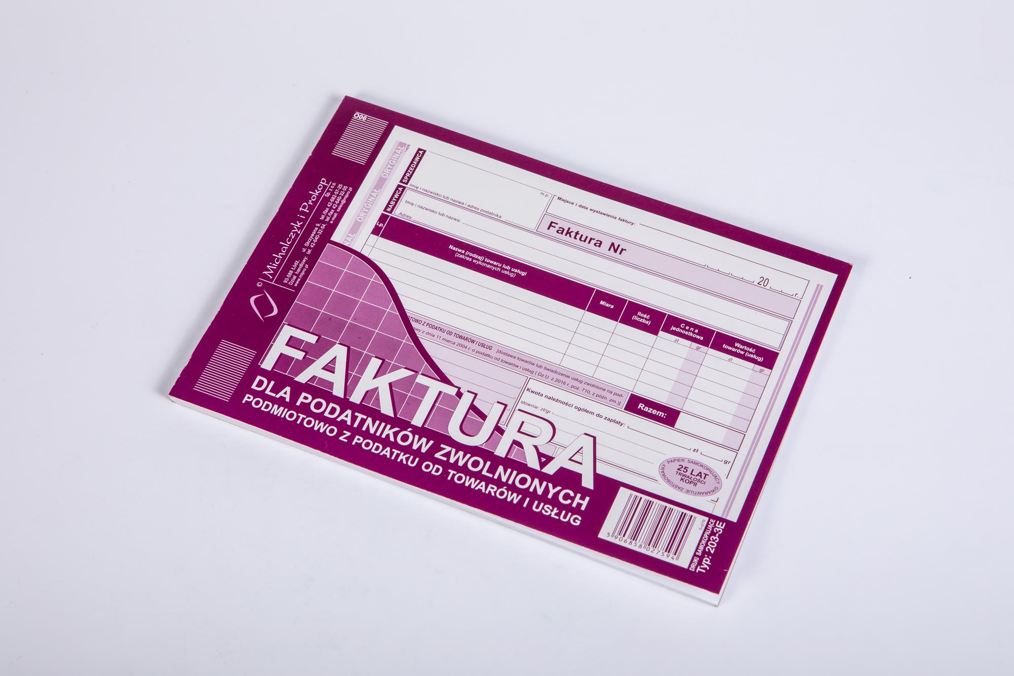 Faktura dla zwolnionych – A5 poz. 203-3E