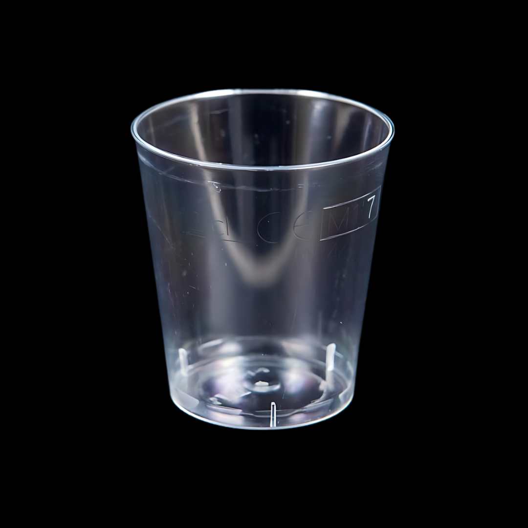 Kieliszek wykonany z przezroczystego i cienkiego plastiku, doskonale imitującego szkło, co nadaje mu bardzo elegancki i profesjonalny wygląd.