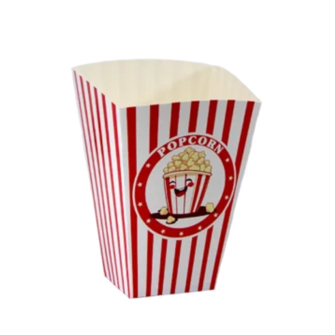 Wykonane z wysokiej jakości tektury, odpornej na tłuszcz i wilgoć, opakowanie zachowuje swoją formę przez cały czas użytkowania. Dzięki temu serwowanie popcornu staje się wygodne i higieniczne. Estetyczny nadruk w stylu kinowym nie tylko przyciąga wzrok, ale również wspiera wizerunek Twojej marki – nadaje ofercie profesjonalny, dopracowany charakter.