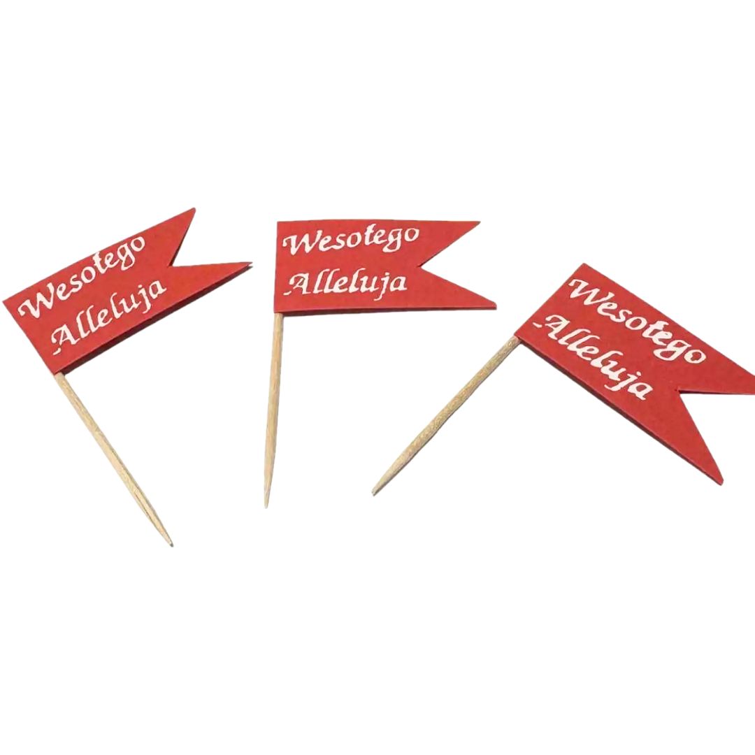 ✨ Chorągiewki wielkanocne – tradycyjna ozdoba do baranków świątecznych, mazurków, jak i do koszyczka ze święconką.